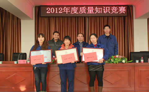 本次質量知識競賽活動在公司領導的高度重視和舉辦部門的努力策劃下,共有8個參賽代表隊和100多名員工參加比賽,知識競賽活動分五輪進行(分別為個人必答環節,集體必答環節,現場互動環節,搶答環節,風險環節)。經過三個多小時的緊張角逐,最終102車間代表隊和質量保證部代表隊獲得了分別獲得了表彰獎勵。競賽活動結束時,公司總經理陳德剛、副總經理高勇、生產副總監王智等領導向獲得表彰獎勵的代表隊頒發了獎勵。